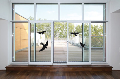 en film rigide, autoadhésif, décollable, réutilisable,, résistant aux intempéries, format feuille: 300 x 300 mm,, ext. noir, int. coloré, 6 oiseaux par rame, contient 1 rame, (15539)