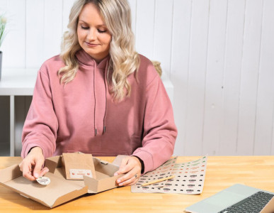 brun naturel, autoadhésif, adhérence permanente, imprimable,, pour imprimante à jet d'encre, laser et photocopieur,, aspect moderne papier kraft, à base de 35% de fibres de, silphie au minimum, (10763)