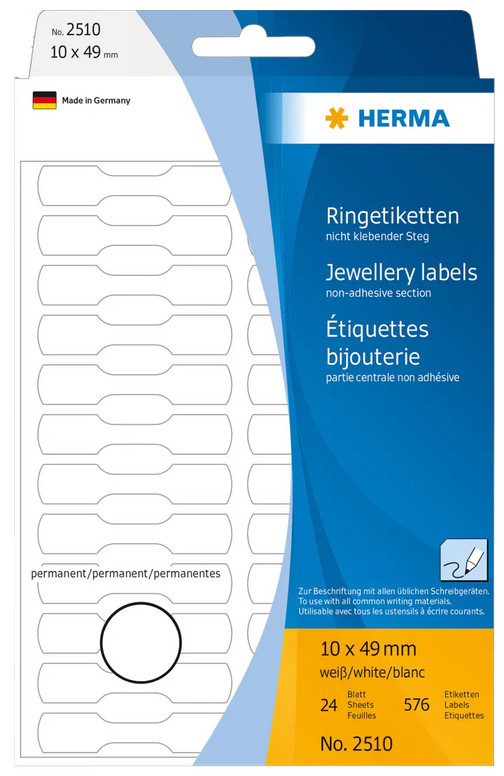 Étiquettes bijouterie 10 x 49 mm, blanches, demi carton mat, pour l'inscription manuelle,