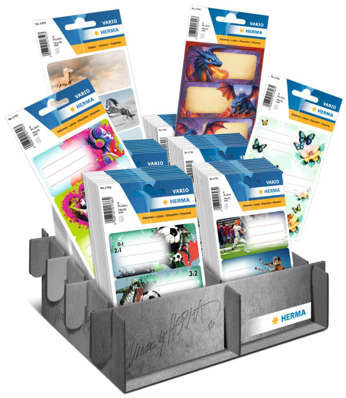 présentoir en carton, dim.: (L)235 x (P)180 x (H)90 mm,, assorti en 6 motifs nouveautés 2026, contenu: 60 petits paquets, (15833),