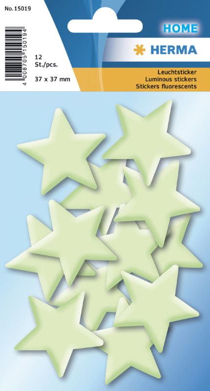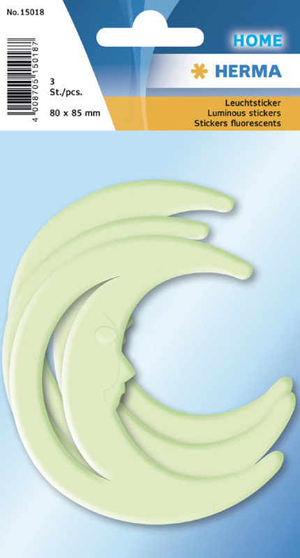 en plastique, avec point adhésif pour la fixation, éclaire, dans l'obscurité, contenu: 1 planche de 3 sticker, (15018),