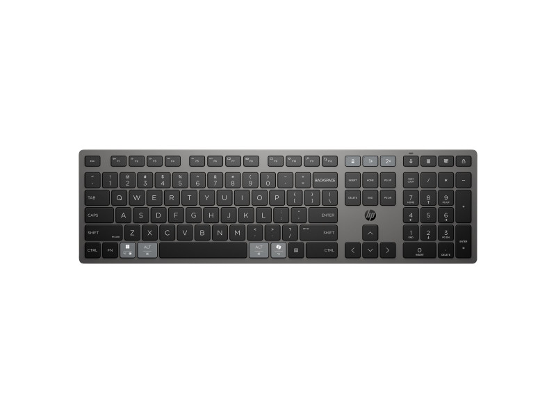 HP 725 - Clavier - multi-appareils, rechargeable, alimenté par SuperCapacitor - full size - sans fil - 2.4 GHz, Bluetooth - Français - noir tombée de nuit