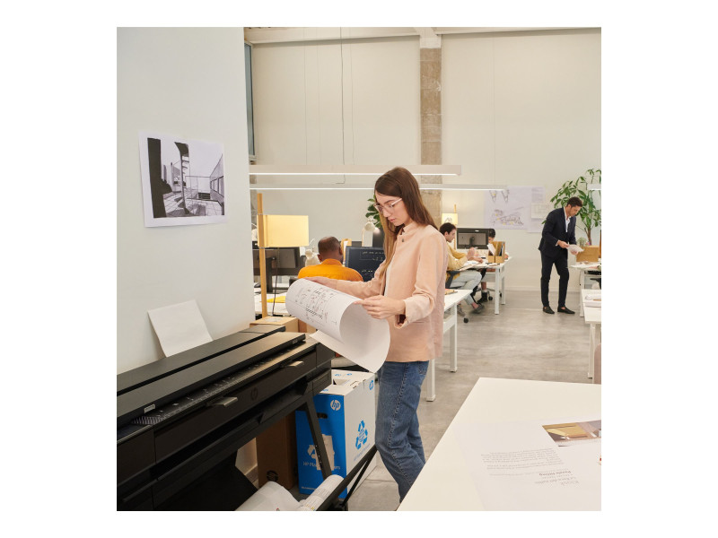 Maximize your team's agility with the world's easiest A4/A to A0/E experience. Simplify multi-size printing with the integrated input tray. Streamline workflows with HP Click. And meet office and environmental needs with this compact plotter.