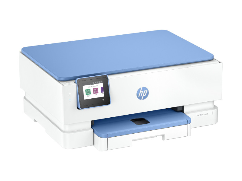HP ENVY Photo 7231 All-in-One - Imprimante multifonctions - couleur - jet d'encre - 216 x 297 mm (original) - A4/Legal (support) - jusqu'à 13 ppm (copie) - jusqu'à 15 ppm (impression) - 125 feuilles - USB 2.0, Wi-Fi(ac) - OOV blanc avec des accents bleu nuage, bleu nuage