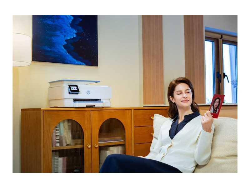 HP ENVY Photo 7931 All-in-One - Imprimante multifonctions - couleur - jet d'encre - 216 x 297 mm (original) - A4/Legal (support) - jusqu'à 13 ppm (copie) - jusqu'à 15 ppm (impression) - 125 feuilles - USB 2.0, Wi-Fi(ac) - OOV blanc avec des accents bleu nuage, bleu nuage
