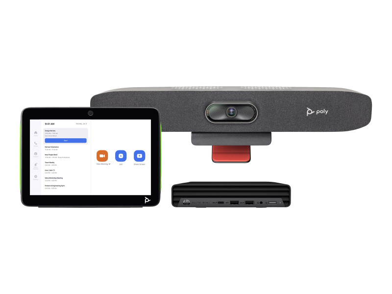 HP Poly Studio Small Room Bundle - Pour Zoom Rooms - kit de vidéo-conférence (contrôleur tactile Poly TC10, Mini PC de conférence HP, Poly Studio R30 video bar) - certifié Zoom, Certifié pour Microsoft Teams - sable - power adapter included