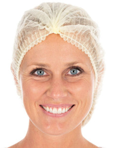 qualité légère, en PP non tissé, fabriqué à la machine,, avec bande élastique sans latex, aéré, taille universelle,, diamètre: 500 mm, en sachet, contenu: 100 pièces, (1219)