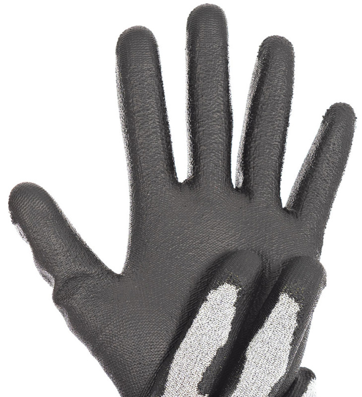 gant tricoté en fibre spéciale, paume & bouts de doigts, revêtus de polyéthylène noir, résistant à l'usure, 3 bouts, de doigts revêtus de cuivre pour écrans tactiles, gris/noir, contenu : 1 paire (taille 9 / L), (33414)