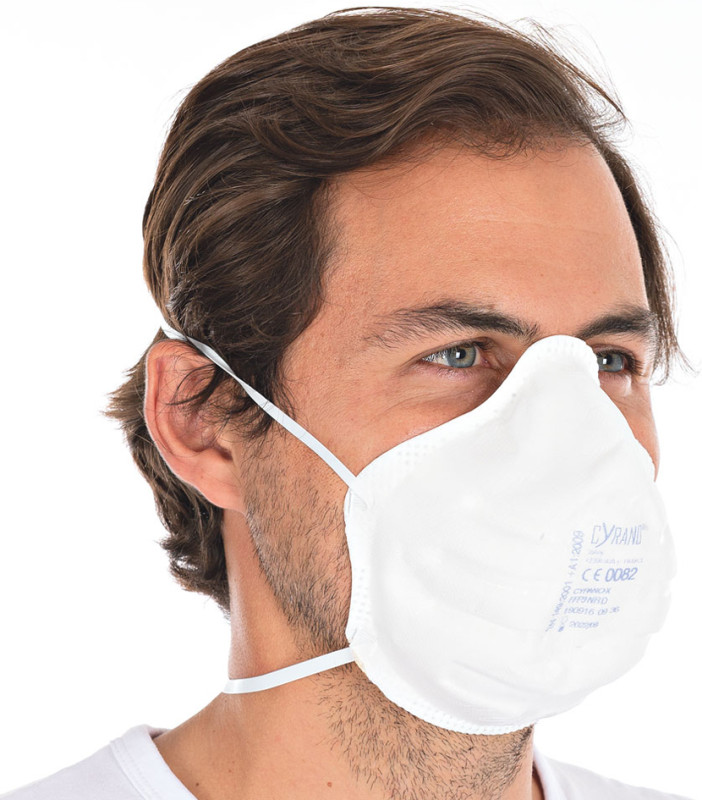 masque blanc en PP, sans soupape, Soft Cup avec coussinet, nasal, sans allergènes & latex, antiviral et antibactérien,, 2 élastiques, idéal pour être porté longtemps,, en paquet de 10 pièces dans une boîte distributrice, (29352)