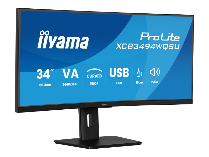 iiyama ProLite XCB3494WQSU-B1 - Écran LED - incurvé - 34" - 3440 x 1440 UWQHD @ 120 Hz - VA - 350 cd/m² - 3000:1 - 0.4 ms - HDMI, DisplayPort, USB-C - haut-parleurs - noir mat