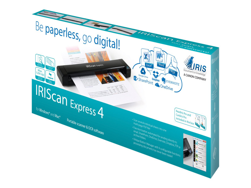 Lettres, contrats, factures, reçus, documents commerciaux, correspondance manuscrite, photos ou cartes de visite : numérisez tous les types de documents, où que vous soyez! IRIScan Express 4 allie un scanneur couleur ultra portable à un logiciel d'OCR révolutionnaire. L'encodage de documents devient un jeu d'enfant, que vous soyez à la maison, sur la route ou au bureau. Compact, léger et alimenté par USB, il est conçu pour être transporté partout et rangé dans n'importe quel sac ou mallette d'ordinateur portable.