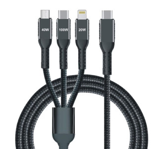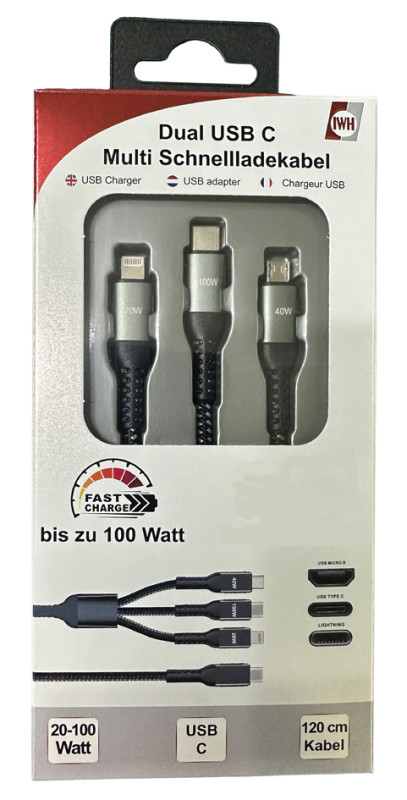 Multi-Schnellladekabel, auch zur Datenübertragung geeignet,, Gesamtlänge: 1,20 m, Farbe: schwarz, Leistung: 20-100 Watt, (019057), ,