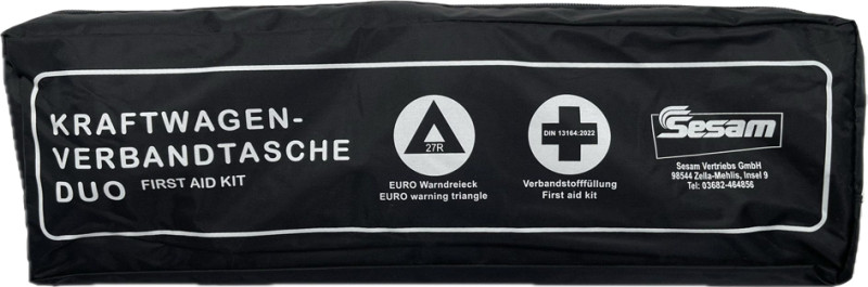 ----------------- Für den Markt: D / L / CH ----------------, Tasche aus 100 % Nylongewebe, mit Reißverschluss, Maße:, (B)440 x (T)140 x (H)50 mm, mit Klettbändern zur Befestigung, im Kofferraum, inkl. Warndreieck gemäß ECE R27, (023507)
