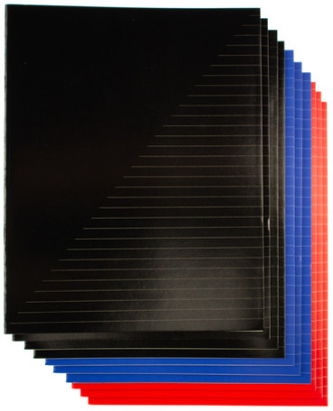 papier 60 g/m2, sans bois, blanchi sans chlore, 80 pages,, reliure brillante, 160 g/m2, marge à gauche,, assorti dans les couleurs: noir, rouge et bleu, contenu: 5 pièces, (K-58331)
