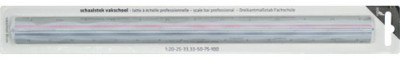règle avec six échelles différentes: 1:2,5/1:5/1:10/1:20/, 1:50/1:100, avec cannelures colorées, (K-760331), ,