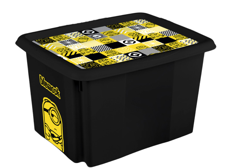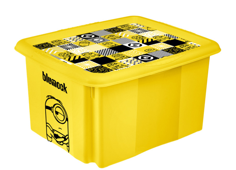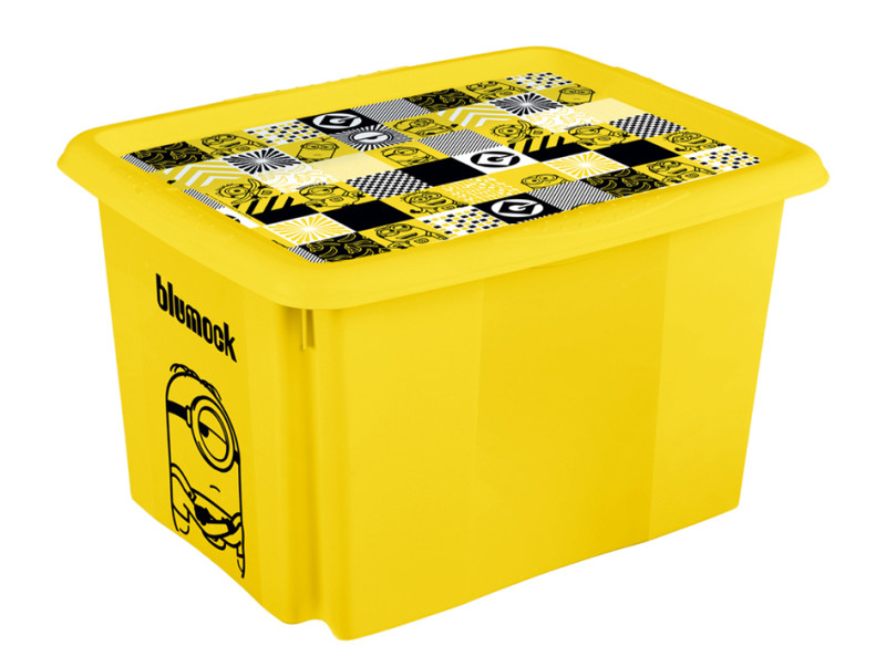 boîte empilable avec couvercle, en PP, jaune, avec motif, imprimé, dimensions: (L)355 x (P)425 x (H)225 mm, (1223720536100), ,