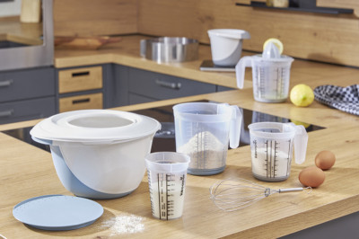 matériau: PP/TPE, fond antidérapant, paroi graduée pour les, liquides, le sucre, la farine, les cups (US) et ounces (US),, diamètre: 105 x (H)115 mm, (1049068015500),