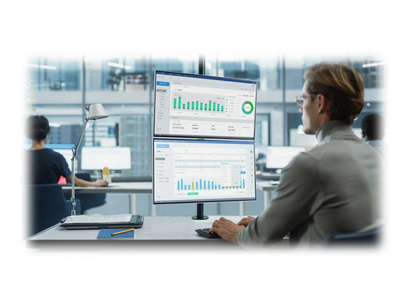 Le bras pour écrans superposés offre un support solide et stable de deux écrans jusqu'à 32" (9 kg), tout en maximisant l'espace de travail. Idéal pour les jeux, la navigation Web de haut en bas, les salles de contrôle et partout où l'espace sur le bureau est limité. Une poignée à dégagement rapide permet d'ajuster la hauteur de l'écran en douceur et sans effort. Facile à installer et à utiliser, la conception full-motion permet de positionner l'écran dans n'importe quelle direction. Les plaques VESA 75/100 amovibles et orientables sur ±180° et le serre-joint préinstallé (support passe-câbles en option inclus) constituent une plate-forme stable et sûre facile à installer. Le passe-câbles intégré réduit l'encombrement.