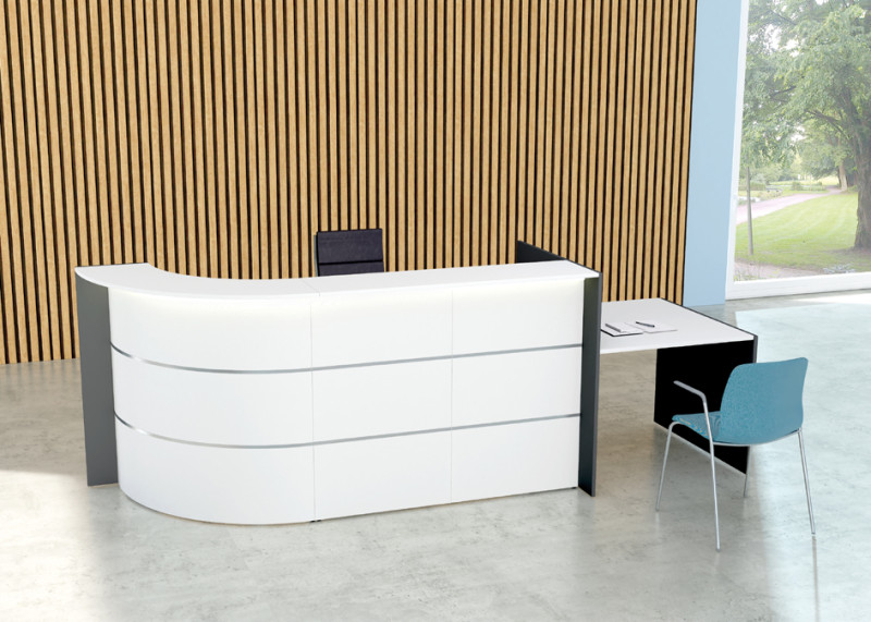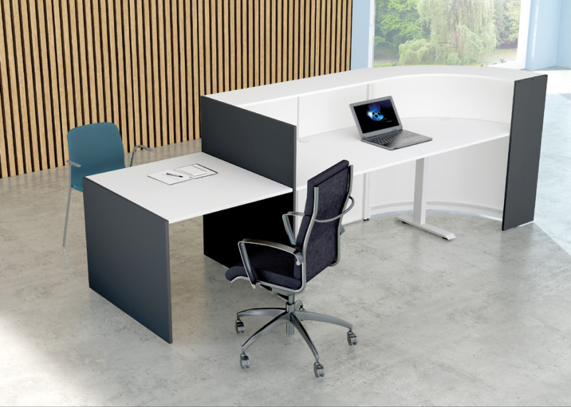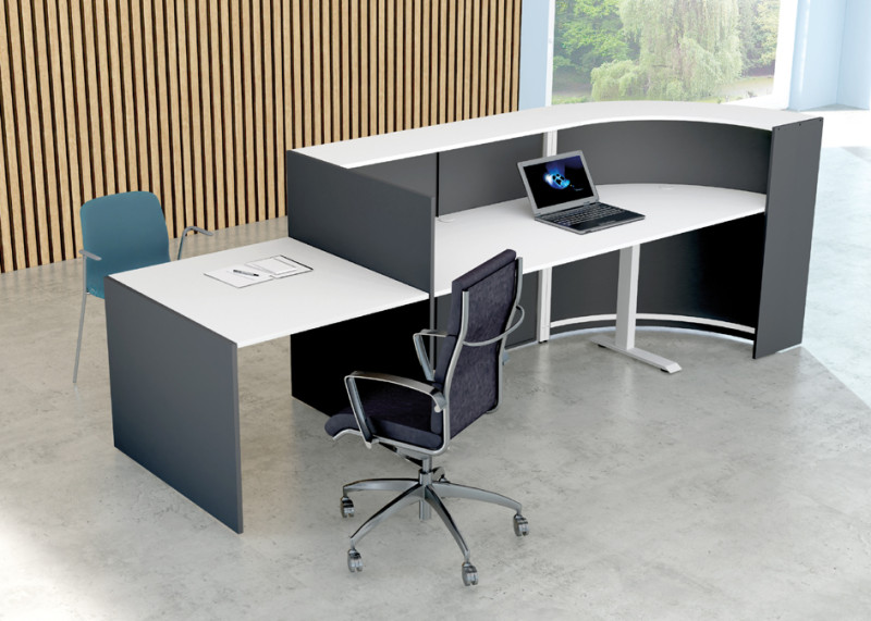elektrische Höhenverstellung: 760 - 1.050 mm, Holz-/Stahl-, Konstruktion, Arbeitsplatte: (T)800 x (H)19 mm,, 2 Durchlässe, Front anthrazit mit Edelstahlstreifen /, Wangen anthrazit, Maße: (B)3.190 x (T)950 x (H)1.120 mm, (21360233)