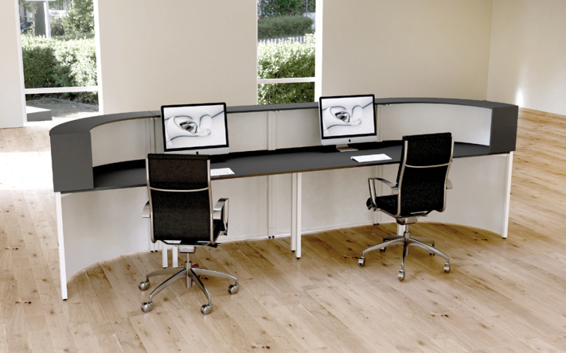 weiß/anthrazit, Holz-/Stahlkonstruktion, melaminharz-, beschichtete Holzplatten mit ABS-Kanten, Tischplattenstärke, 19 mm, 1 Durchlass für Kabelführung, Front mit Edelstahl-, streifen/Dekor weiß, Arbeits- & Ablageflächen anthrazit, (21385810)