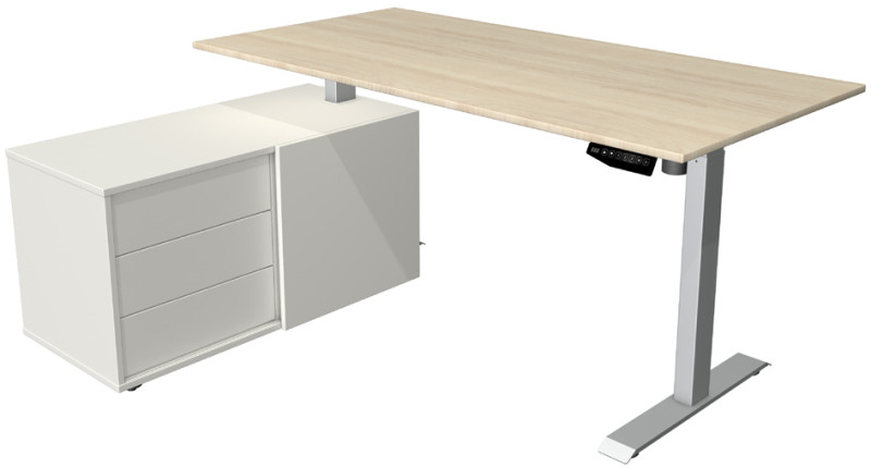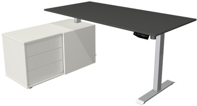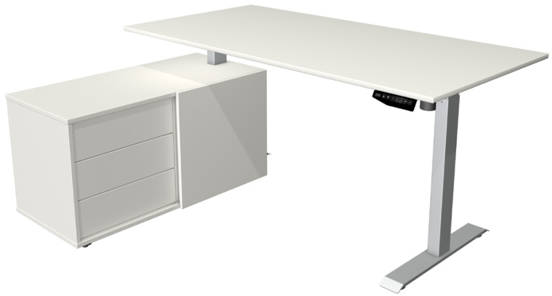 composé de table de bureau assis-debout (L)1.600 x (H)800 x, (H)740-1.230 mm, réglage électrique de la hauteur, couleur, du piètement: argent, élément d'angle (L)1.020 x (P)500 x, (H)550 mm - avec 3 tiroirs & 1 porte coulissante,, (10221913)