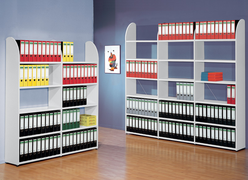 gris clair RAL7035, 5 hauteurs de classeur, paroi latérale, en bois mélaminé avec des pieds de nivellement, 5 tablettes, en acier thermolaqué,, dimensions: (L)800 x (P)325 x (H)1.900 mm, (9840)