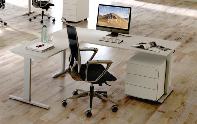(B)1.600 x (T)800 x (H)700 - 820 mm, höhenverstellbar,, Anbauelement: (B)1.000 x (T)600 mm, Anbauelement rechts oder, links montierbar, T-Fuß-Gestell aus Stahl, Fußgestellfarbe:, alusilber, Tischplattenstärke: 19 mm,, (11023050)