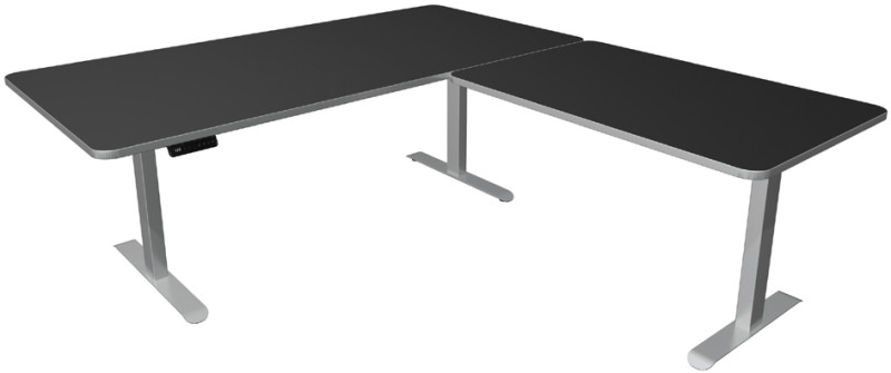 dimensions: (L)1.600 x (P)800 x (H)720-1.210 mm, avec élé-, ment d'angle: (L)1.000 x (P)600 mm, réglage électrique de, la hauteur, piètement en T couleur argent, épaisseur plateau, 25 mm, plateau mélaminé, couleur : anthracite, (3322)