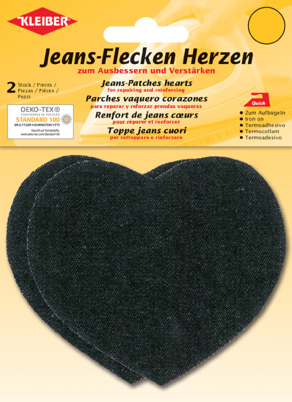 85 x 105 mm, matériau: 100% coton, en forme de coeur, pour, rapiécer et renforcer les tissus en jeans, lavable à 40, degrés,, contenu : 2 pièces, (34321)