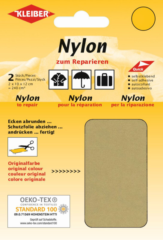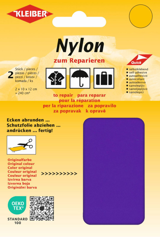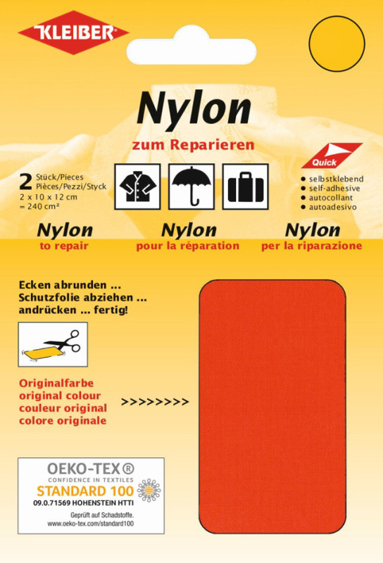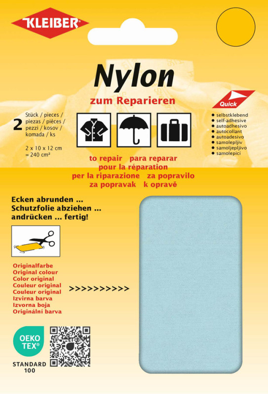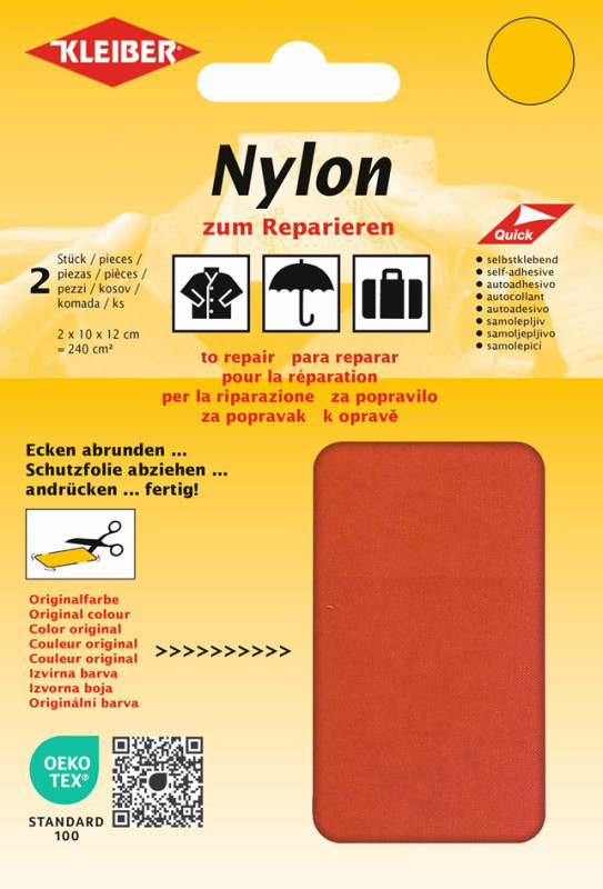 pour réparer vêtements de plein air, parapluies, sacs,, articles de camping, etc..., matériau : 100 % polyamide,, dimensions: 100 x 120 mm, peut être découpée, contenu : 2 pièces, (43050)
