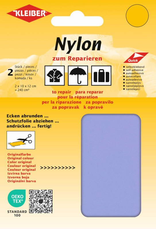 pour réparer vêtements de plein air, parapluies, sacs,, articles de camping, etc..., matériau : 100 % polyamide,, dimensions: 100 x 120 mm, peut être découpée, contenu : 2 pièces, (43042)