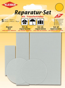 pour réparer blousons, anoraks, parapluies, vêtements de, pluie, sacs de voyage, valises en nylon, articles de camping, etc, matériau: 100% polyamide, pièces pouvant être découpées, à la dimension voulue, set constitué de différentes pièces, (43009)