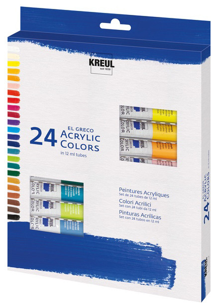 à base d'eau, séchage rapide, brillante, opaque, résistante, à la lumière, diluable dans l'eau, miscibles les unes aux, autres, peut être opaque et translucide peint, assorti dans, les couleurs, tube en aluminium, contenu: 24 pièces, (28253)