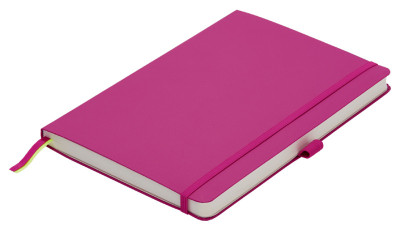 säurefreies Papier 90 g/qm chamois, Lamy-Lineatur,, 8 Blätter heraustrennbar, 2 Lesezeichen, mit Schlaufe, für Schreibgeräte, elastischer Gummizugverschluss,, Falttasche im Einband, Fadenheftung, 192 Seiten, (1234280)