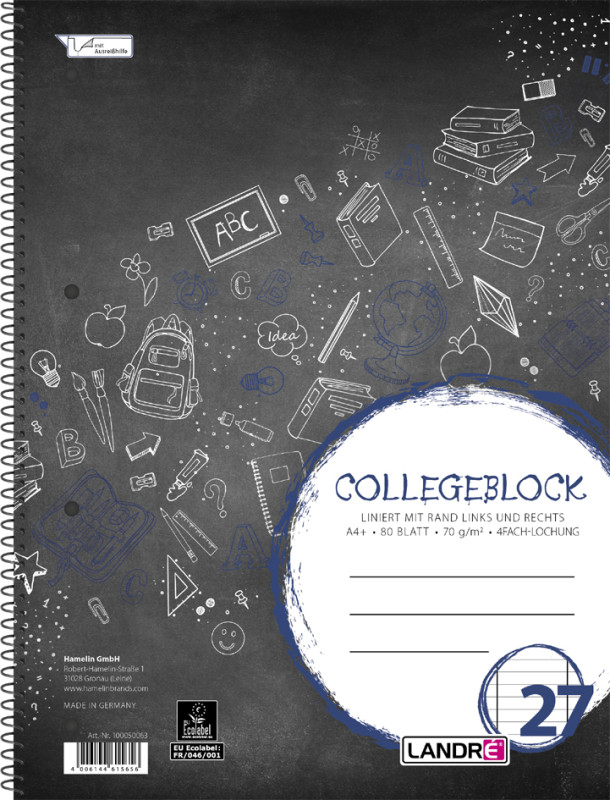 marge à gauche indiquée, 70 g/m2, sans bois, spirale sur la longueur, 4 perforations, (100050152), ,