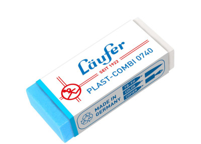 dimensions: (L)46 x (P)20 x (H)9 mm, gomme bicolore:, côté bleu pour stylos bille et feutres, encre et encre de, chine, côté transparent pour crayons, crayons à copie et, crayons de couleur (07400)