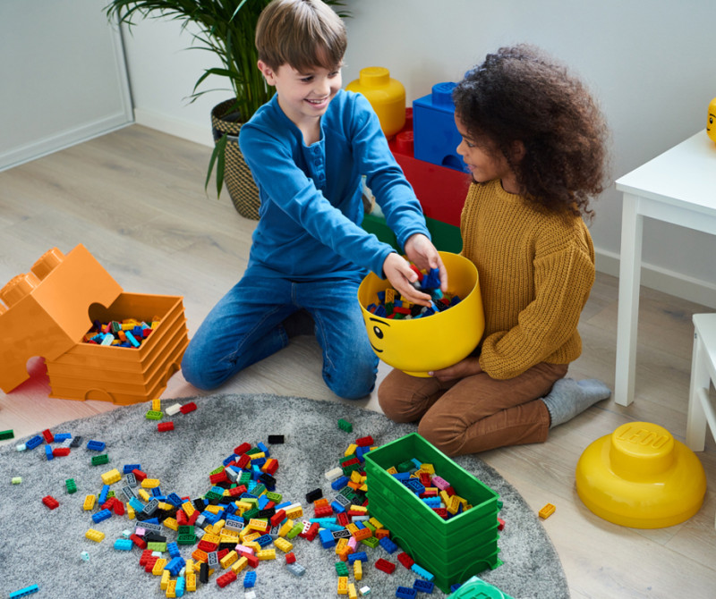 weiß, großer Minifigurenkopf aus PP, Motiv: Skelett,, stapelbare Aufbewahrungsbox mit Deckel,, genau wie LEGO Stein stapelbar, perfekte Deko für Halloween,, Durchmesser: 240 mm, Höhe: 271 mm, (40320808)