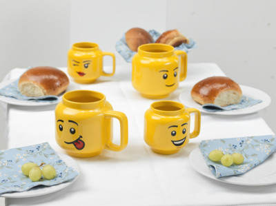 LEGO Tasse à café WINKING GIRL, 255 ml, dans carton, jaune en céramique, en forme de tête de mini-figurine LEGO, motif: clin d'oeil, lavable au lave-vaisselle, dimensions: (L)111 x (P)62,5 x (H)84 mm (40460813)
