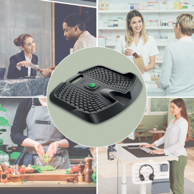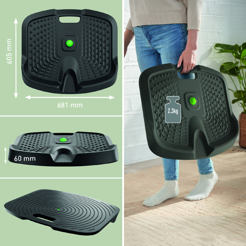 für komforables, aktives Arbeiten im Stehen, aus weichem, Kunststoff, wasserabweisende Oberfläche, mit Griff zum, Transport, unterschiedliche Massagezonen, erhöhter Rand,, inkl. Massageball, Maße: (B)605 x (T)681 x (H)60 mm, (53730089)