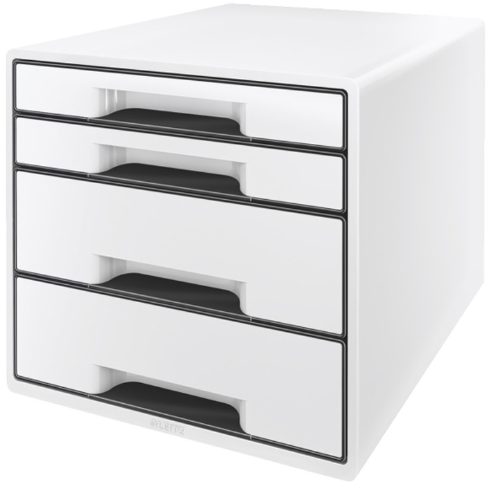noir,pour format A4 Maxi, ultra brillant, tiroirs avec butée, d'arrêt, fermeture frontale, par simple pression, encoche, ergonomique, 2 tiroirs fins et 2 larges, pieds caoutchouc,, organiseur inclus, dans un carton blanc, (5252-10-01)