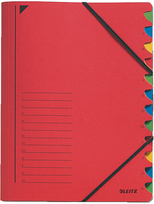 rouge, carton robuste coloré 450 g/m2, intercalaire 320 g/m2, avec élastique, avec encoches colorées,, dimensions: (L)245 x (H)320 mm, (3907-00-25),