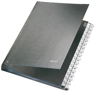 carton rigide, noir, intercalaire en carton résistant,, reliure en carton, avec 6 trous de visualition, onglets, plastiques, dos extensible, dimensions: (L)270 x (H)345 mm, (5844-00-95),