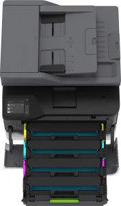 : l’imprimante couleur Lexmark MC3426i multifonctionnelle et polyvalente pour petits groupes de travail est facile à déployer et à partager. Compacte et légère, elle offre une capacité d’impression allant jusqu’à 24 pages par minute et est recommandée pour un cycle d’utilisation mensuel entre 750 et 5000 pages.