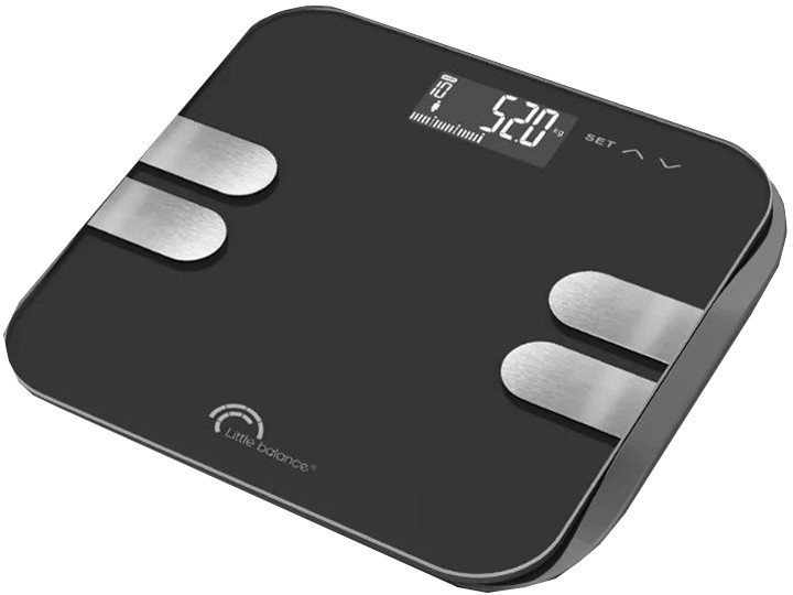 impédancemètre avec 4 capteurs, design: Wave extra slim,, 10 mémoires, capacité de charge: 180 kg, graduations: 100 g,, écran, alimentation par piles: 2x 1,5V (AAA), digital,, poids propre: 1,5 kg, dim.: (L)300 x (P)300 mm, (LB 8210)