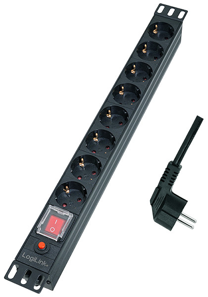 ----------- für den Markt: D / NL / A / L ------------------, schwarz, mit Schalter, zur Monatge im 19" Profilrahmen,, 1 HE, Aluminiumgehäuse, Betriebsspannung: 230 V (AC),, 50 Hz, max. 16 A, Kabellänge: 2 m, Schutzkontaktstecker, (PDU8C05)