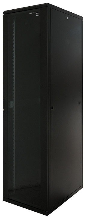 en acier de 1,2 -1,5 mm, porte vitrée avec verre de sécurité, poignée pivotante et serrure à cylindre, panneaux arrière et, latéraux amovibles, capacité de charge: max. 1500 kg,, livré monté, dimensions: (L)600 x (P)600 x (H)2.033 mm, protection IP20 (D42S66B)