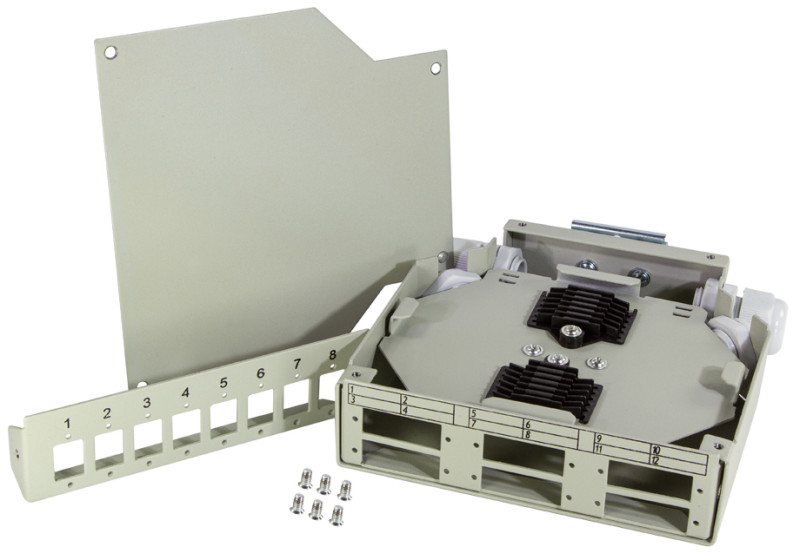 ou SC, pour 6x connecteur femelle SC-D / LC-Q ou 8x connec-, teur femelle LC-D / SC-S, non équipée, pour le montage de, pigtails et de connecteurs, cassette d'épissure et support, de fibres inclus, avec 4 porte-épissures rétractables,, (FB5000)
