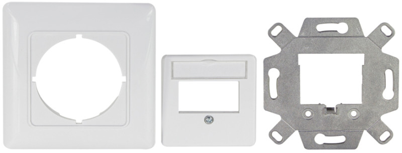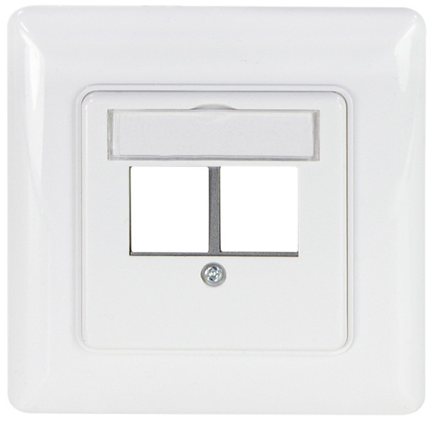blanc signalisation (similaire à RAL 9003), design compati-, ble, pour 2 modules Keystone, sortie droite, convient aux, connecteurs USB, HDMI, fibre optique ou RJ45, kit complet, composé d'un cadre, d'une plaque centrale & d'une bague, (NK4059)