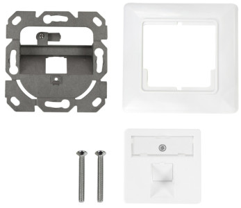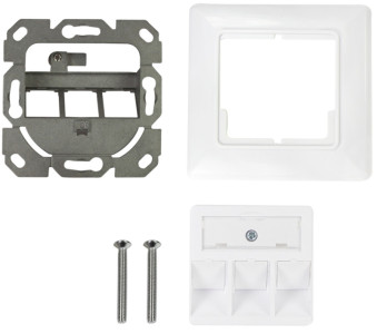 pur (RAL9010), 3 ports, compatible avec de nombreux interrup, teurs de fabricants allemands, pour 3 modules keystone,, sortie coudée du module à 45 degrés vers le bas, avec, fenêtre d'inscription, cadre externe 80 x 80 mm, (NK4055)