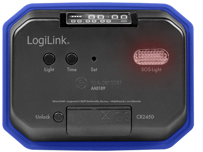 LogiLink Disque de stationnement électronique, bleu activation automatique après une minute sans mouvement, passage automatique à l'heure d'été ou d'hiver, avec écran LCD, avec lampe SOS, alimentation par pile, incl. pile CR2450 & 4 pastilles adhésives (AA0189)
